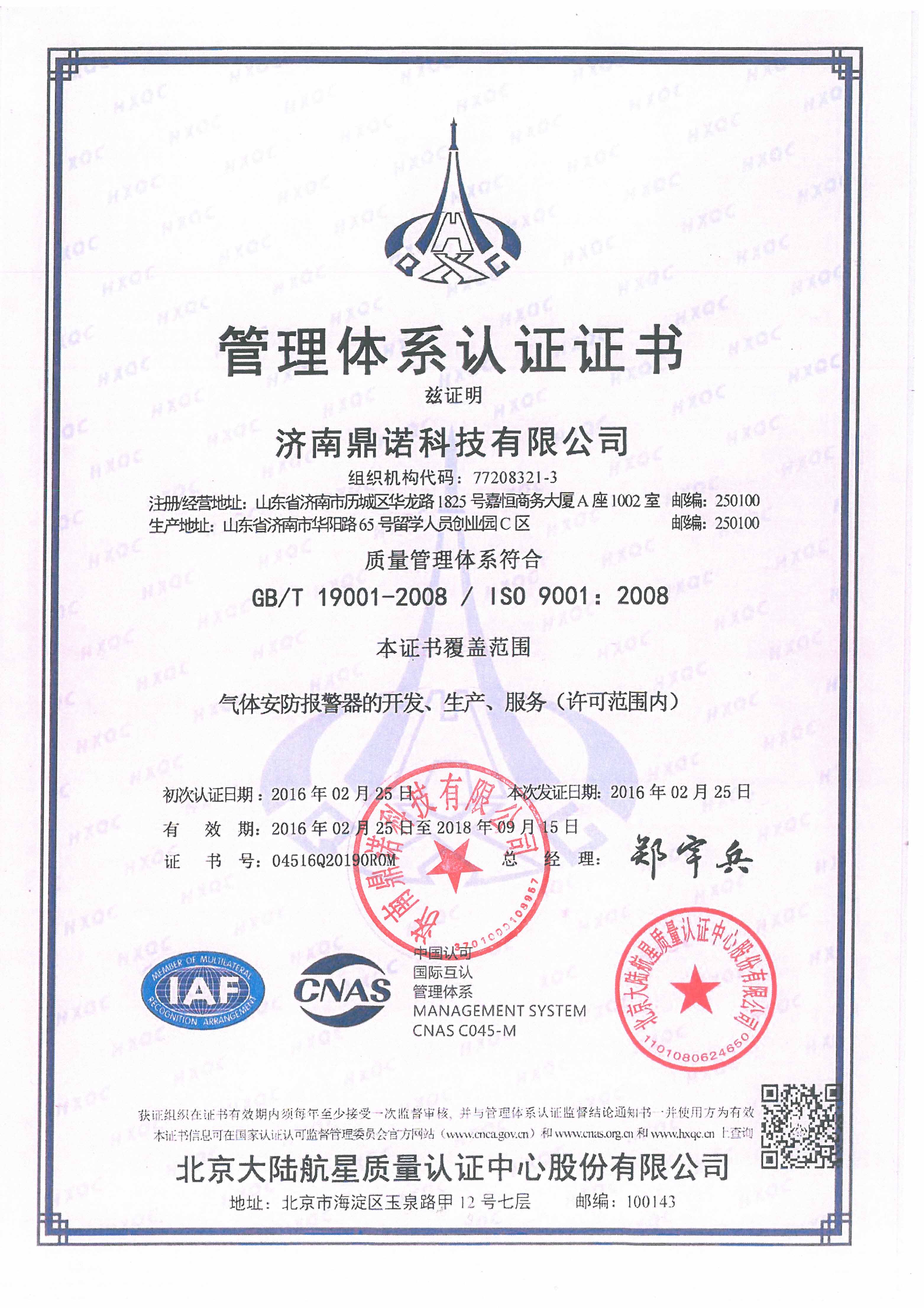 管理体系认证证书