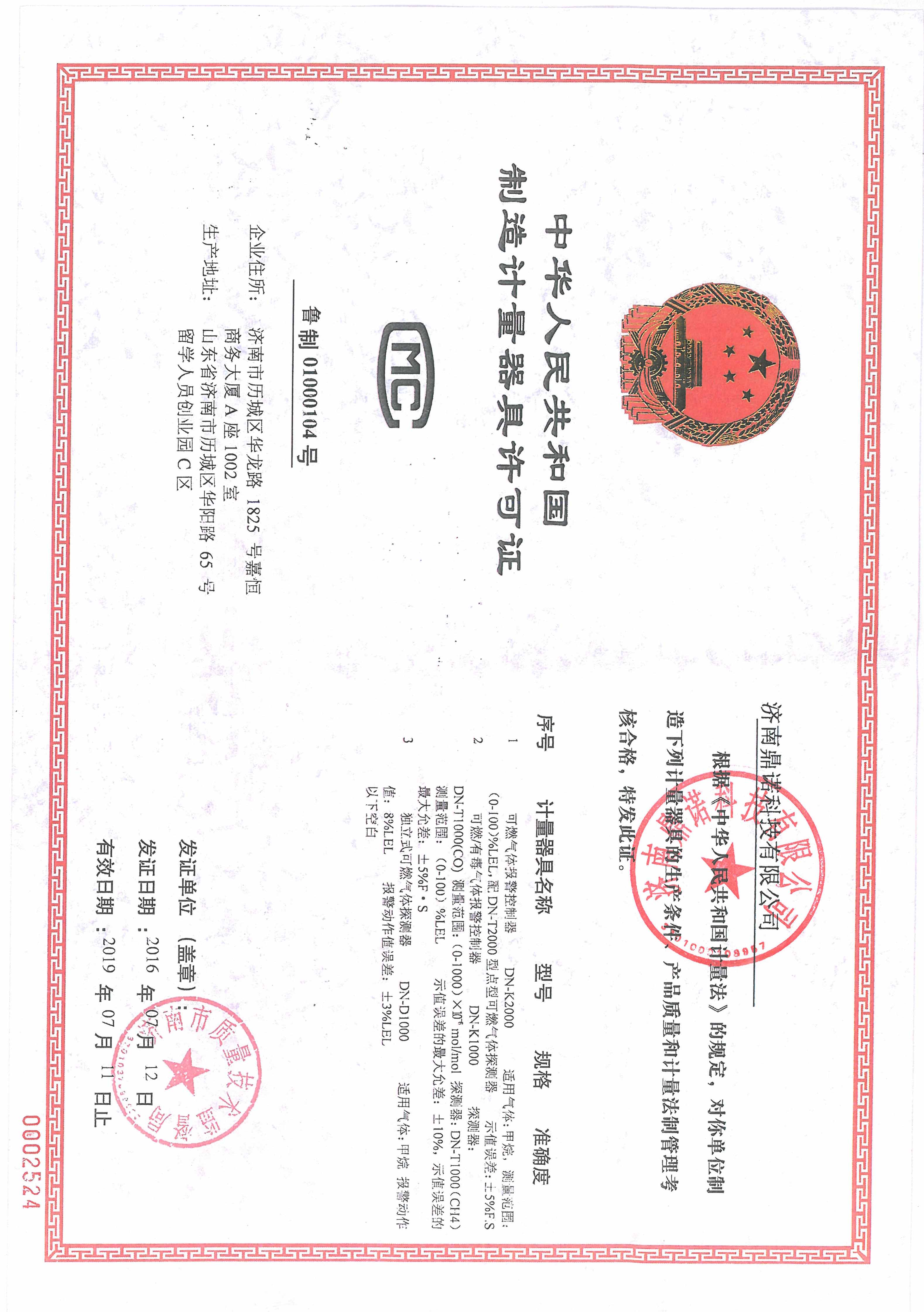 制造计量器具许可证